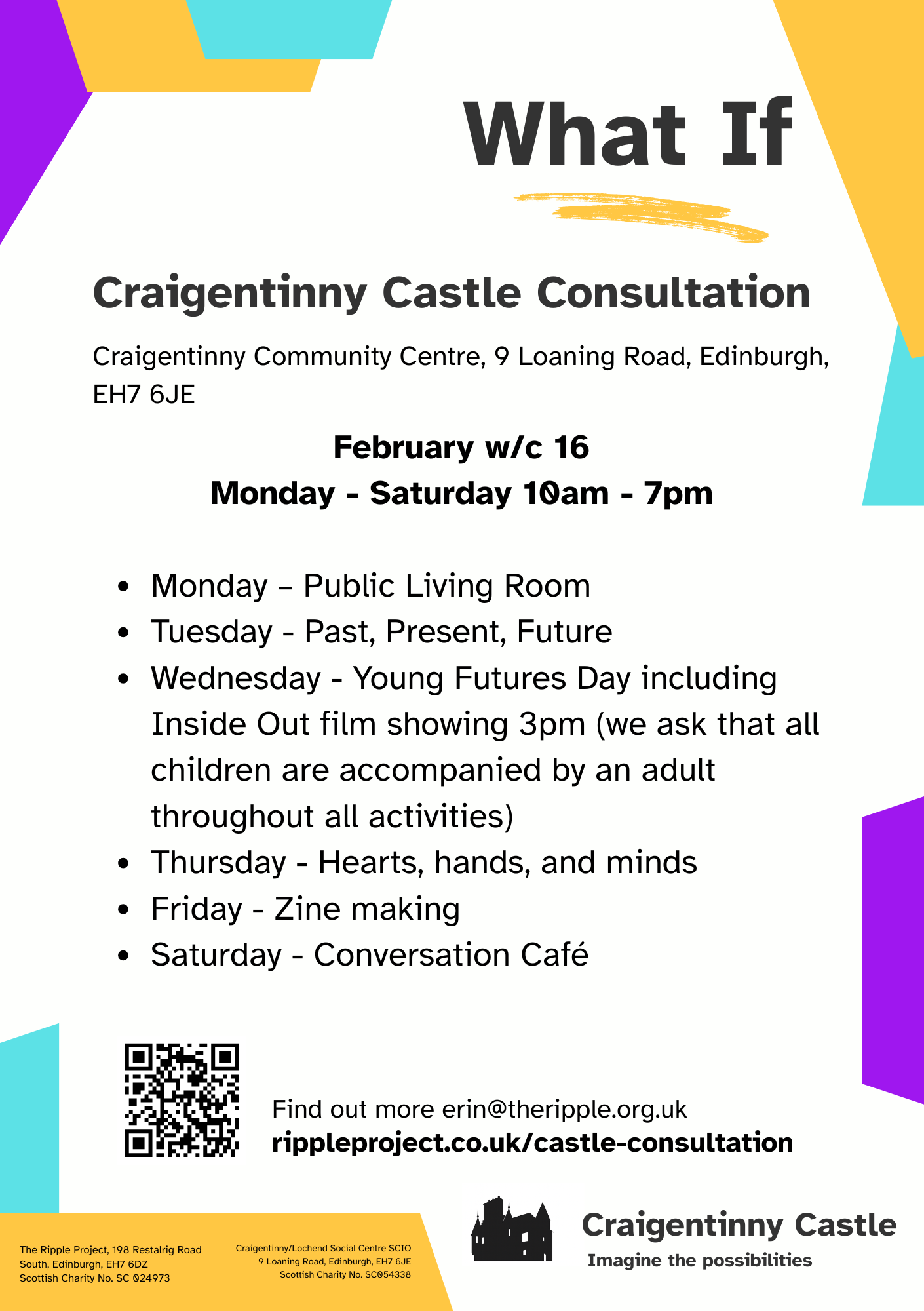 The Ripple Project, together with the Craigentinny Community Centre Management Committee, local residents and community partners, is leading a year‑long community consultation to explore the future of Craigentinny Castle and its surrounding area.